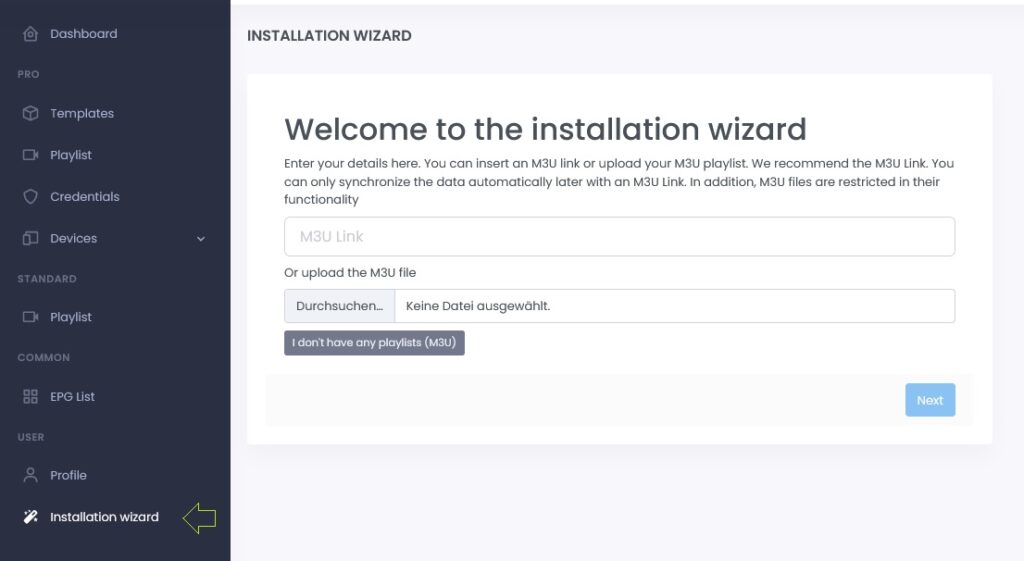 We recommend the installation wizard for new users. The wizard guides you step by step. This will give you your first template or playlist.