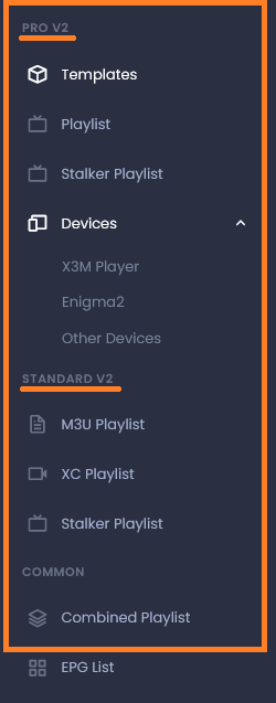 The MAG Line as you know it from the V2 no longer exists in the V3. We have also made improvements here. You can now create a simple playlist and add a new device (Stalker device). There is no extra cost for it like in the V2