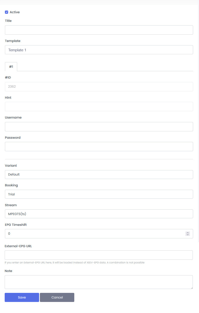If you enter an External-EPG URL here, it will be loaded instead of XEEV-EPG data. A combination is not possible - Note (optional)