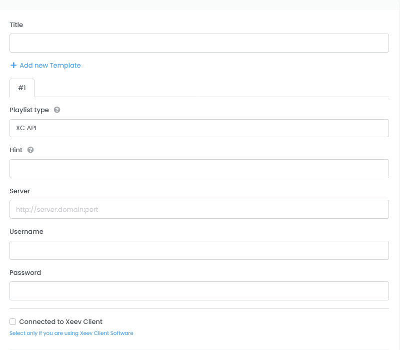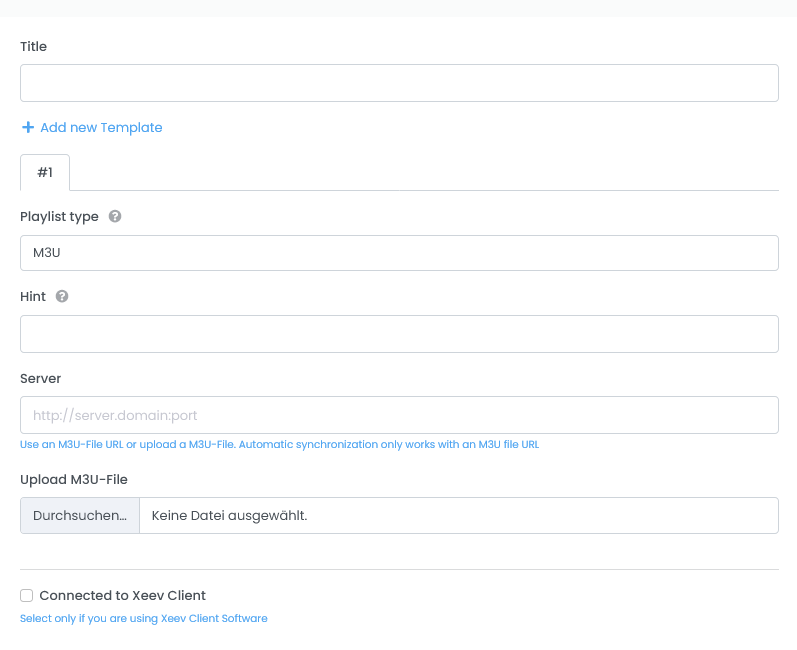 Here you choose the way your template is synchronized with the IPTV provider or the content is loaded. You can choose between “XC API” and “M3U”. XC API means the Xtream Codes protocol, which many IPTV providers offer. More information here - Hint