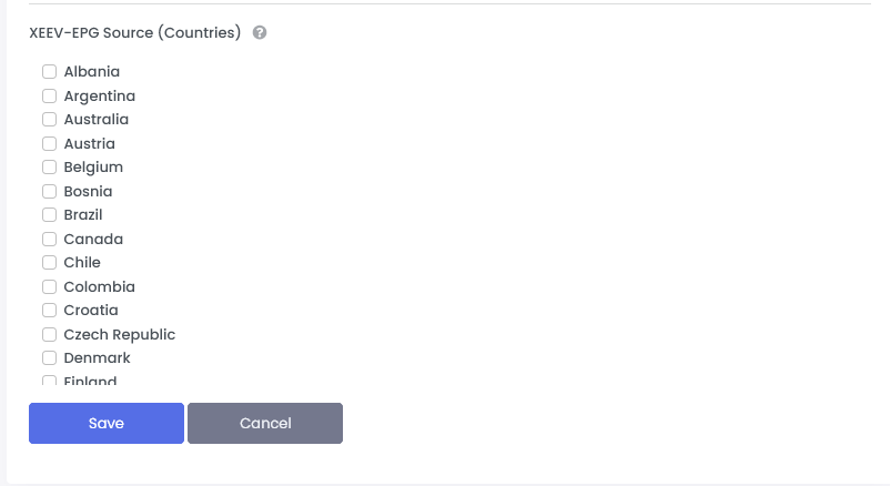 If you want to use our EPG data, you can select the desired EPG countries here. It is recommended to select up to 8 individual EPG countries. If more than 8, the entire EPG data source will be delivered. The entire EPG source is 300 MB in size when unpacked. For performance reasons, it is strongly recommended to choose a smaller EPG source
