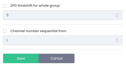 - Adjust the channel numbers of the whole category by defining the start number. The numbers are continuously adjusted for each stream in this category