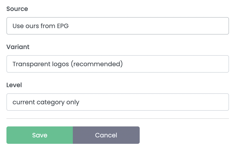 Here you can define your own logo “URL”. This will be applied to every entry in the list, depending on the selected level. It will apply to the entire template/playlist or only to the category.